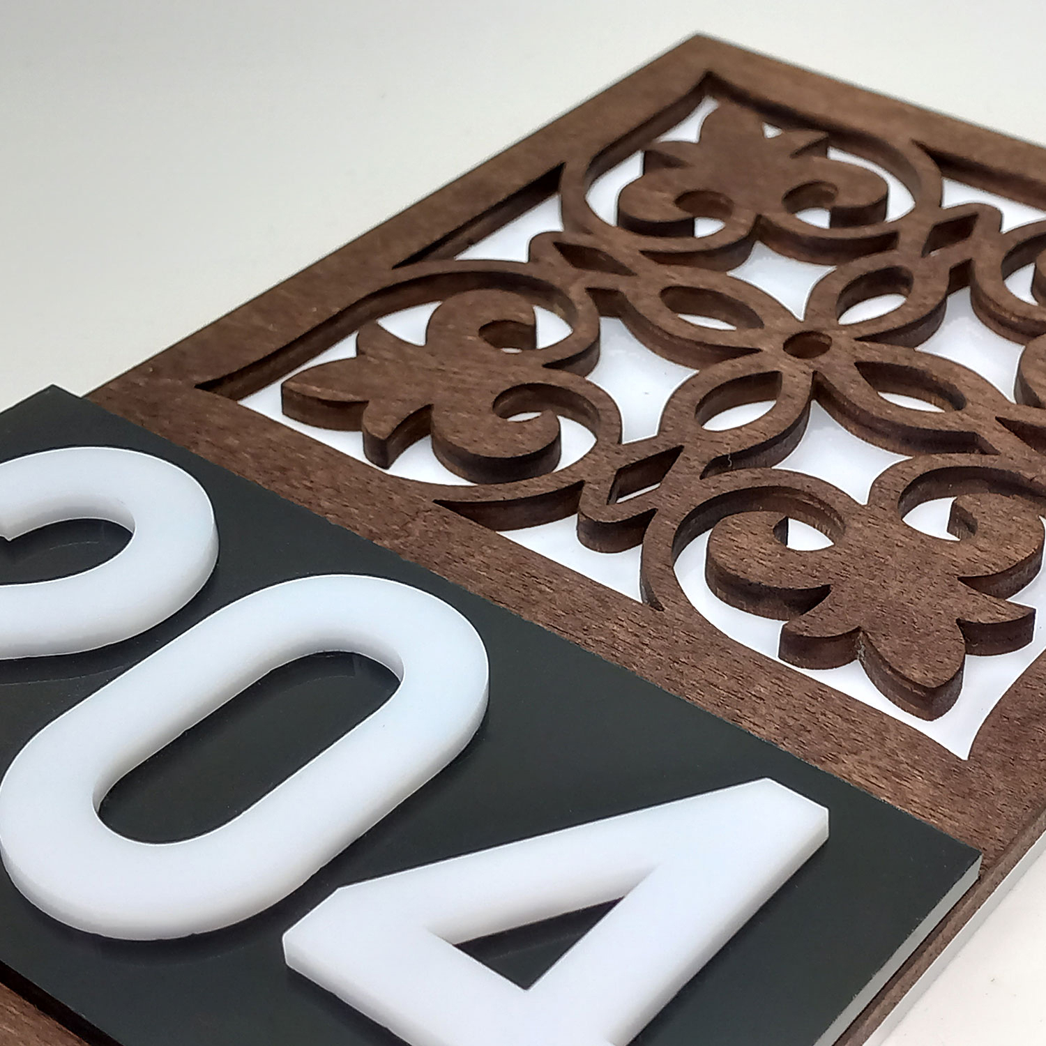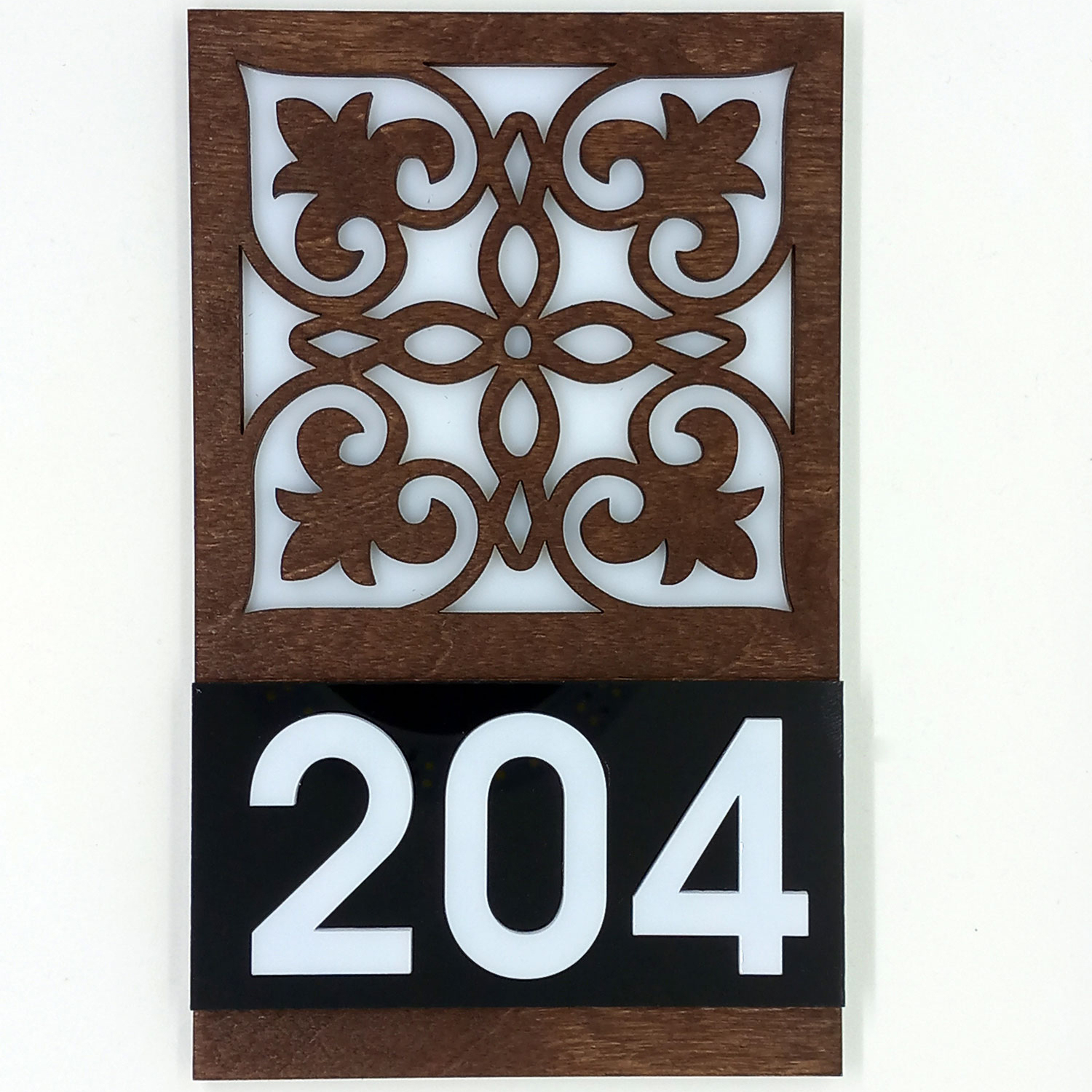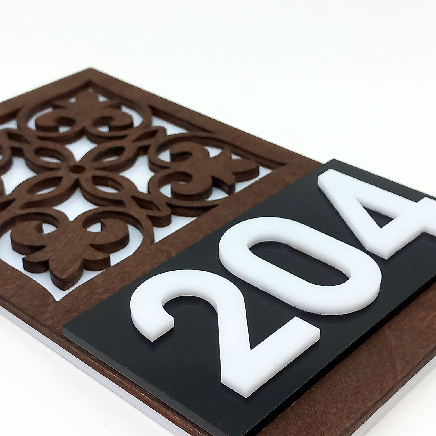 Placuta indicator pentru camera din lemn si plexiglas - Floral